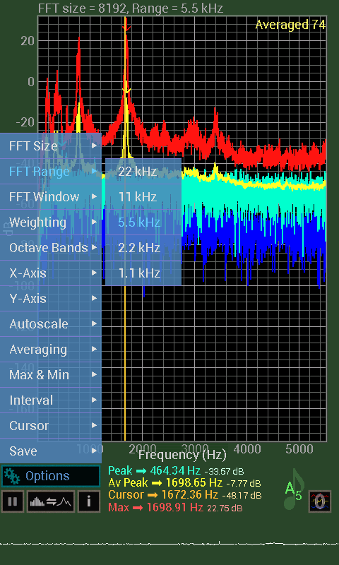 Untuk respons terbaik pada perangkat yang lebih lambat, pertahankan ukuran FFT tetap rendah.