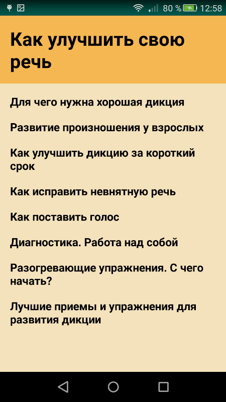 Setiap tahun itu menjadi lebih dan lebih sulit untuk menemukan seseorang yang tidak hanya memiliki artikulasi yang sempurna, tetapi juga terus-menerus terlibat dalam pengembangan pidatonya. Banyak orang lupa bahwa alam jarang menghadiahi siapa pun dengan data pidato. Oleh karena itu, orang-orang yang ingin memiliki diksi yang sangat baik dan pengucapan jelas harus secara teratur melakukan satu set latihan senam pandai. Aplikasi mengandung alat yang paling efektif dan latihan untuk pengembangan alat bicara. Bagian:
