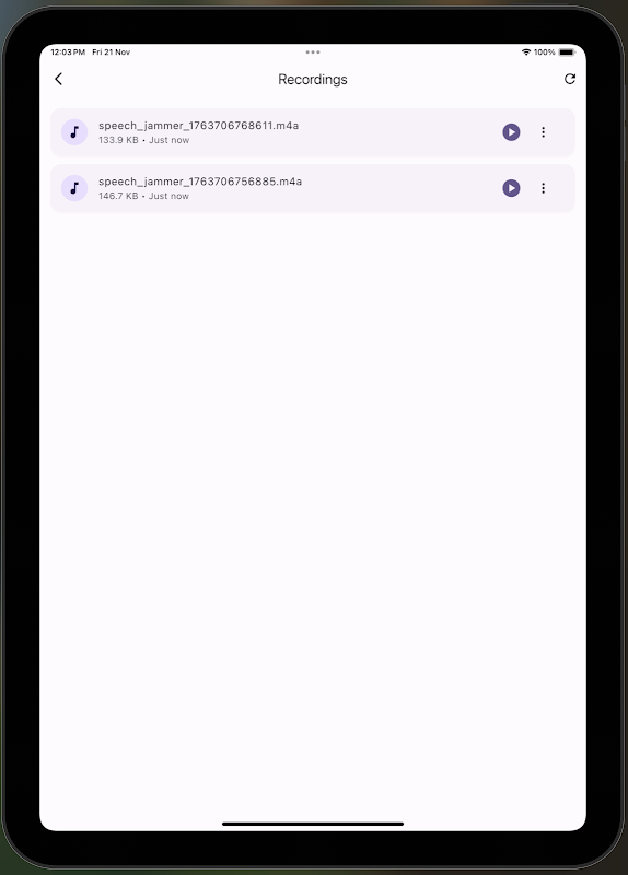 Speech Jammer adalah alat pengganggu suara yang menyenangkan yang memutar ulang suara Anda dengan jeda—sehingga sangat sulit untuk berbicara dengan jelas! Tantang teman Anda, uji fokus Anda, atau nikmati momen-momen kocak selagi jeda tersebut membingungkan otak Anda.