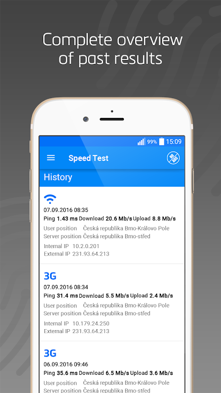 Speed Test adalah aplikasi yang memberikan hasil akurat terhadap kecepatan download, upload, dan ping dalam 30 detik hanya dengan satu kali ketuk saja. Silakan uji kecepatan koneksi internet Anda (baik wifi atau jaringan seluler) dan dapatkah hasilnya secara instan. Bandingkan hasil yang Anda dapatkan dan susun berdasarkan kecepatan upload, kecepatan download, ping, dan kriteria lainnya. Menguji kecepatan koneksi internet belum pernah semudah ini!