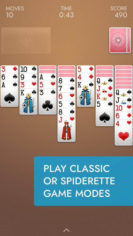 Spider Solitaire memadukan permainan santai yang Anda sukai dengan desain yang bersih dan tampilan yang segar dan modern. Rasakan semua keseruan dan tantangan Spider, termasuk berbagai jenis dan mode Spiderette.