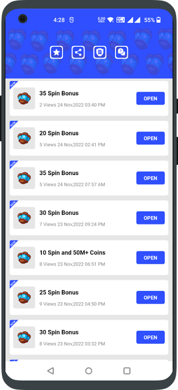 Spin Link - CM Spins adalah untuk orang-orang yang menyukai Spin Ekstra dan Hadiah Koin untuk memainkan CM. umumnya, kami memberikan bonus putaran dan koin untuk game CM. Semua hadiah Spin Link dikumpulkan dari domain publik dan halaman resmi CM. Semua hadiah putaran dan koin diperiksa secara manual sehingga pengguna mendapatkan bonus putaran atau koinnya. Aplikasi spin link menyediakan putaran, koin, Acara Coin Craze, Acara Card Boom, Acara Kegilaan Balon, Acara Perdagangan Emas, dan Acara Set Blast.