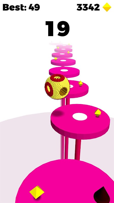 Dodge spikes, collect rubies and make insane perfect combos! Started from the bottom now we're here! Bounce off tiles and make as many hops as you can in this mind-blowing arcade action! Touch the screen and drag left or right to guide the ball from tile to tile. Don’t miss the path! Make insane combos and beat your friend's scores!