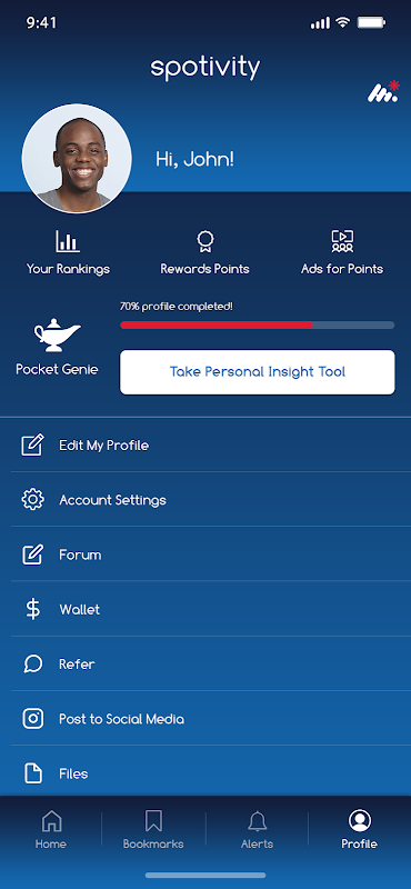 Peringatan & Pemberitahuan Peringatan dan Pemberitahuan Internal mudah dinavigasi sehingga Anda tidak pernah melewatkan pesan penting dari Program yang terhubung, Orang Tua / Wali Anda, atau dari induk di markas besar spotivity.