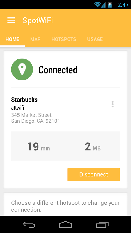 Automatic WiFi: SpotWiFi manages many trusted hotspots like Starbucks and McDonald's and connects automatically when in range. Hotspots for your area are updated daily keeping you current even when traveling.