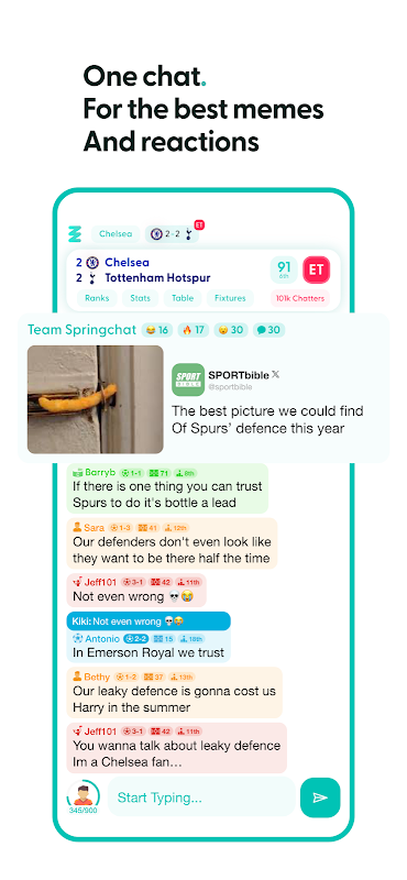 Saat tidak ada pertandingan langsung yang akan datang, nikmati terus mengikuti semua berita, tweet, dan video sepak bola terbaru dalam satu Teamchat yang lancar!