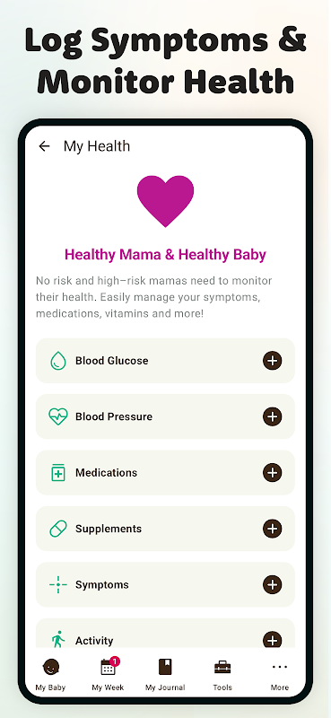 • Catat gejala kehamilan Anda, lacak obat-obatan, dan pantau kondisi vital Anda untuk menjaga Anda dan bayi Anda tetap aman.