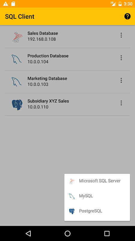SQL Client memungkinkan Anda untuk terhubung ke DBMS yang berbeda langsung dari smartphone atau tablet dan dapat mengeksekusi query, menavigasi melalui tabel atau tampilan, dan bahkan ekspor data.