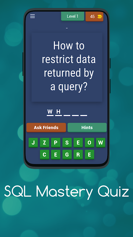Mulailah perjalanan menuju penguasaan SQL dengan SQL MASTERY QUIZ, game kuis terbaik yang dirancang untuk mengasah keterampilan SQL Anda. Apakah Anda siap untuk menguji pengetahuan database Anda dan menjadi ahli SQL? Benamkan diri Anda dalam pengalaman kuis yang menantang dan menyenangkan, semuanya dari kenyamanan perangkat seluler Anda.