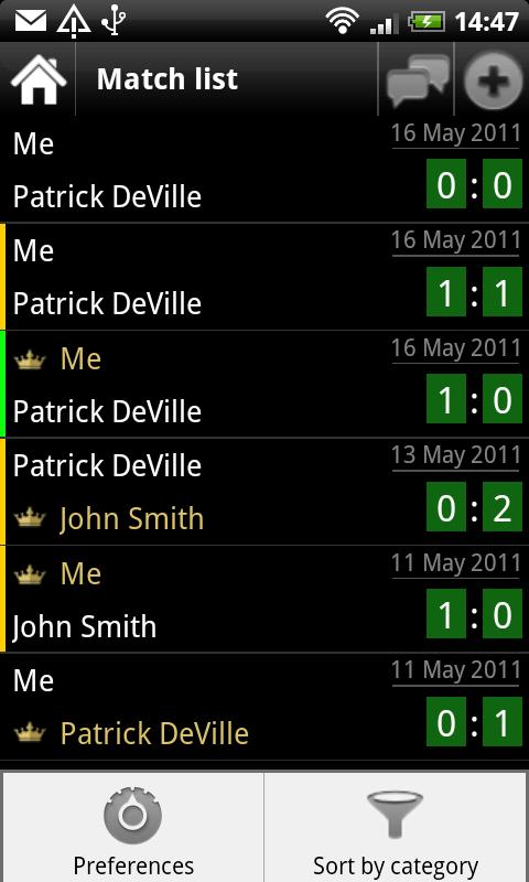 Record your sets and matches, who won and who lost.Review history of your opponents and your matches, and even add to your opponents data regarding their good and bad sides.