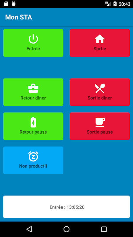 Une fois connecté à l'aide de l'identifiant donné par votre employeur, vous pourrez gérer vos poinçons directement depuis votre appareil et consulter vos poinçons de la journée courante.