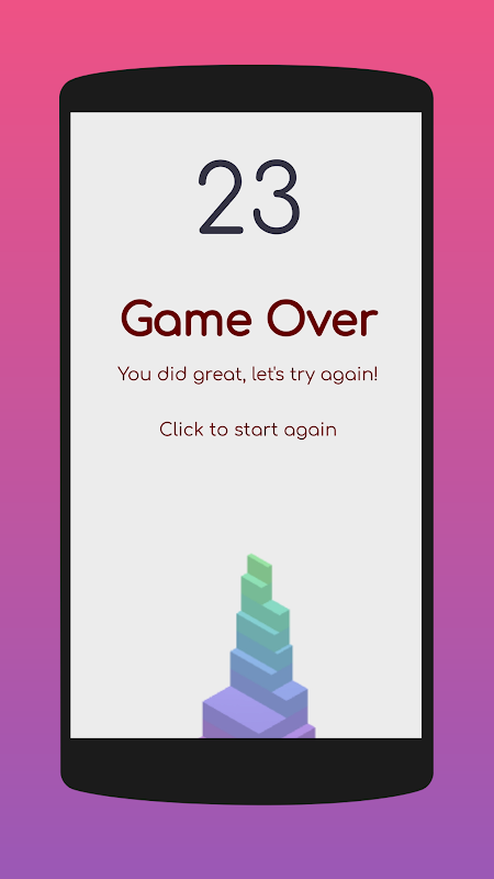 StackUp the blocks at perfect time and keep increasing your score. The speed of block increases parallel to your score.