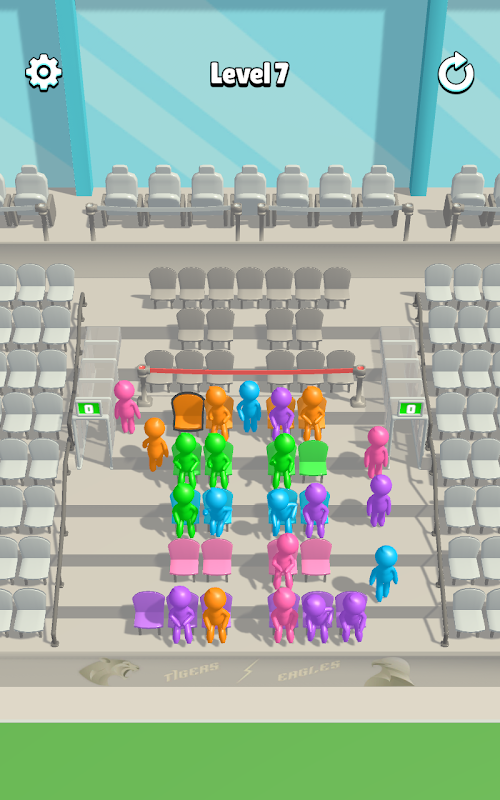Tantang diri Anda untuk mengakali tata letak stadion yang semakin rumit, menggunakan kecerdasan dan refleks cepat Anda untuk mengatasi rintangan dan membimbing setiap Stickman ke tempat duduk yang ditentukan.