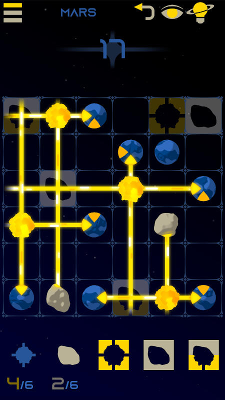 Level teka-teki ruang angkasa yang unik.