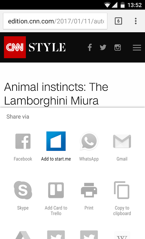 - Simpan tautan ke start.me dengan menggunakan fungsionalitas "Share" standar Android