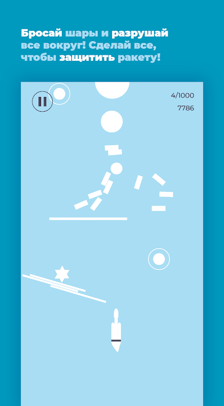 Lempar bola ke rintangan dengan satu jari dan hancurkan rintangan di jalan Anda. Terbang lebih tinggi dan lebih tinggi, bersihkan jalur roket ke bintang-bintang! Setelah mencapai tujuan, telah mencapai bintang-bintang, melewati permainan ini dan menemukan semua musik!