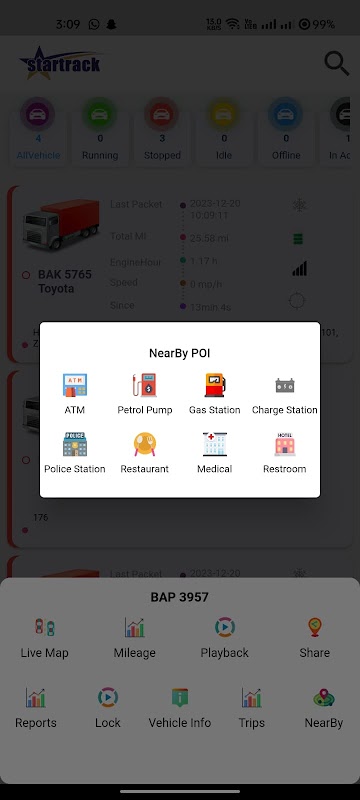 Aplikasi pelacakan kendaraan StarTrack dengan perangkat lunak peta dan pelaporan.