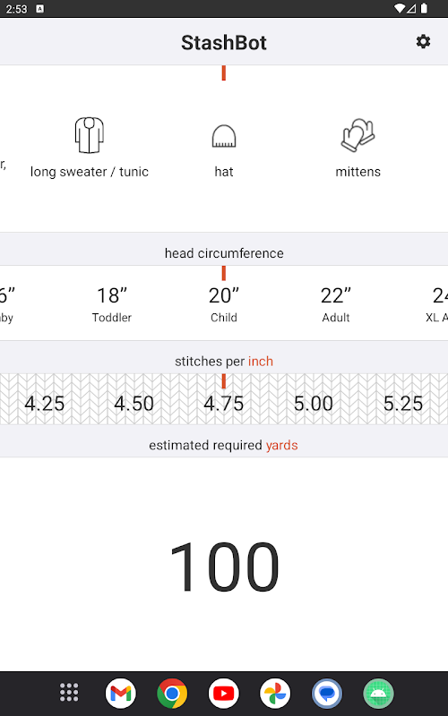 Hitung dengan mudah berapa banyak benang yang Anda butuhkan untuk proyek merajut apa pun. Cukup masukkan detail pola Anda dan StashBot akan melakukan sisanya!