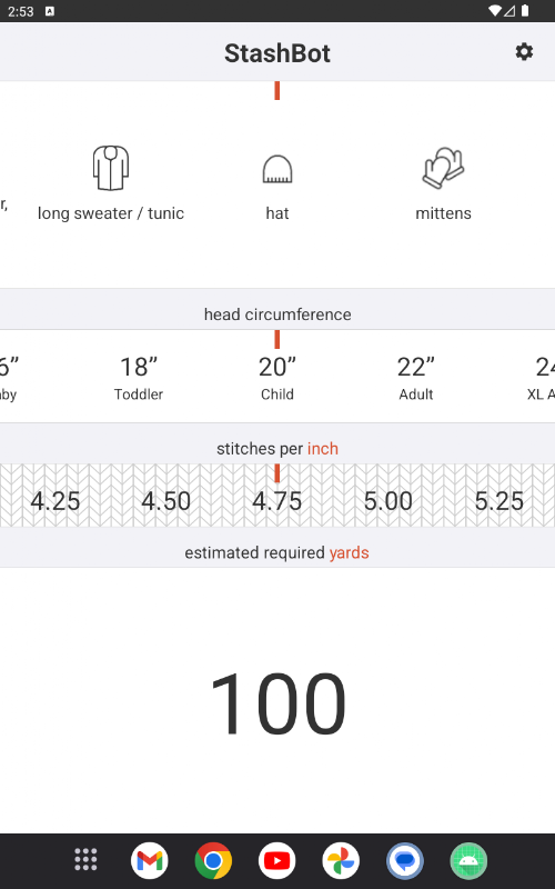 Easily calculate how much yarn you need for any knitting project. Just input your pattern details and StashBot does the rest!
