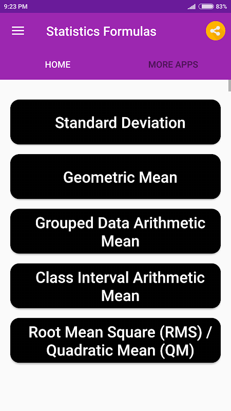 Aplikasi ini berisi daftar semua Statistik formula yang penting. Yang sangat berguna bagi siswa untuk menghemat waktu yang berharga.