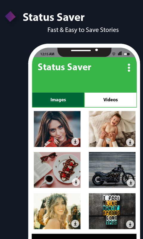 Status Saver Free – Image & Video Downloader let you download GIF, photo images, Videos of new status that your friends post on their feature of Whatsapp Application and it also enables you to repost status and share media from app to your friend.