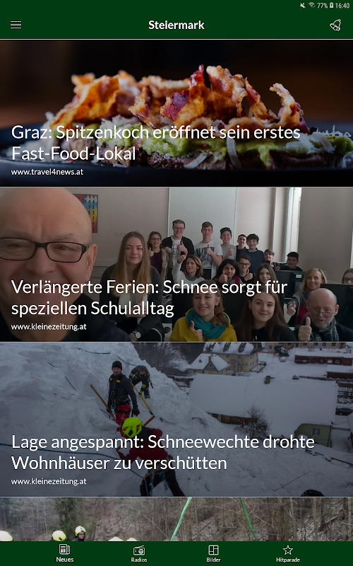 Styria, dari pegunungan di utara perbatasan dengan Slovenia. Sebuah negara yang indah yang dengan Styria-aplikasi sekarang juga bisa dengan diterima di mana-mana. Dengarkan stasiun radio lokal yang paling populer, membaca berita terbaru dari Styria. Itu dan banyak lagi di aplikasi untuk semua Styrians.