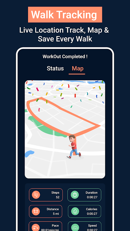 Pedometer & penghitung langkah memudahkan untuk melacak tujuan berjalan harian. Aplikasi gratis pelacak langkah dapat melacak langkah Anda, menghitung langkah Anda, dan menampilkan laporan harian dan mingguan yang mudah dibaca.