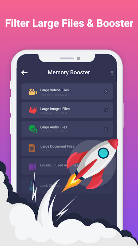 - Temukan file video, audio, gambar, dll yang besar hanya dengan satu klik.