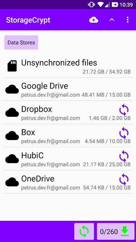 * Encrypted files are stored locally, with optional synchronization on Google Drive, Dropbox, Box, HubiC or OneDrive