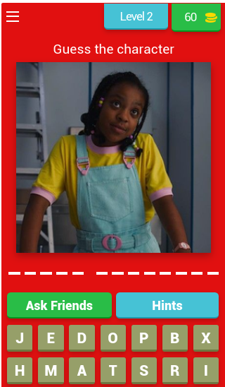Setiap level berisi gambar dengan karakter yang harus Anda tebak.