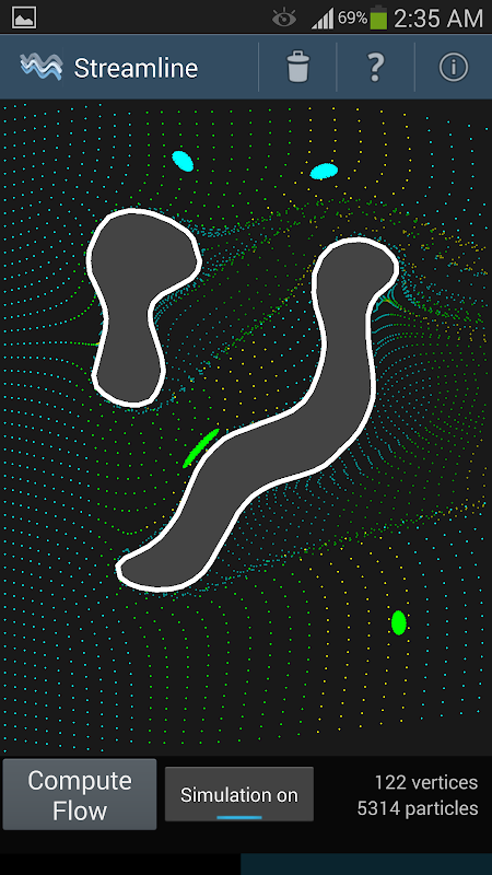 Anda dapat menghasilkan partikel warna yang berbeda selama simulasi untuk membantu Anda memahami aliran mudah. Klik pada layar saat simulasi berjalan untuk menjatuhkan gumpalan partikel pada setiap lokasi yang Anda inginkan, dan menonton terbawa arus!