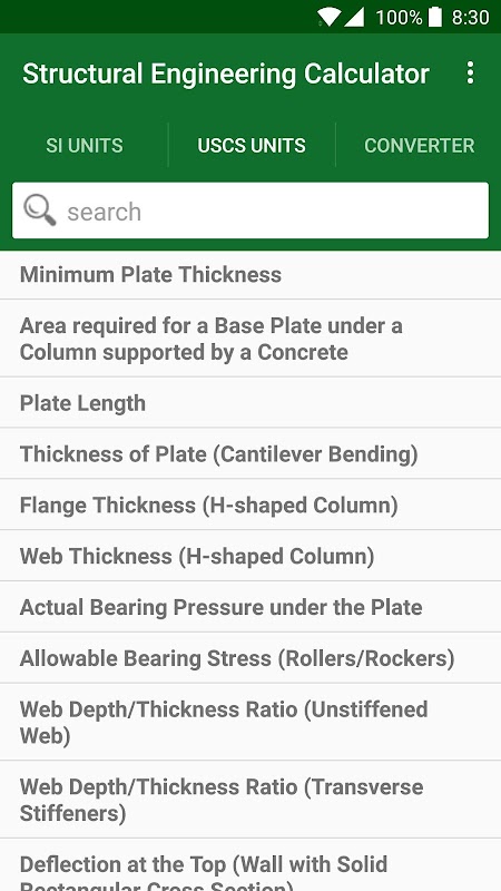 Rekayasa Struktural Kalkulator juga mengandung 32 Pengubah Unit yang berkaitan dengan struktur dan Teknik Sipil.