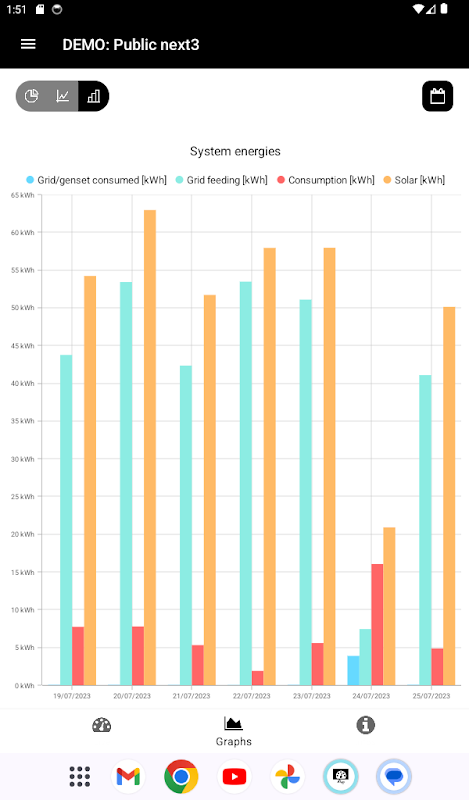 Menganalisis data masa lalu: grafik daya dan energi instalasi Anda