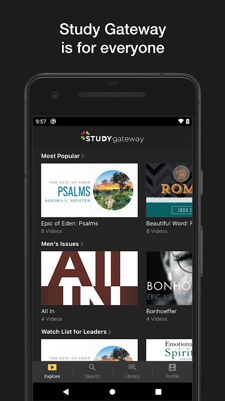 Study Gateway adalah layanan pendalaman Alkitab video streaming dari Zondervan dan Thomas Nelson, yang menampilkan guru, penulis, dan pendeta Alkitab paling tepercaya di dunia, termasuk Max Lucado, Anne Graham Lotz, Louie Giglio, Rick Warren, Derwin Gray, Lysa TerKeurst, Jennie Allen , Andy Stanley, Chrystal Evans Hurst, John Ortberg, Ann Voskamp, Christine Caine, Jada Edwards, Bob Goff, dan Jim Cymbala. Tonton ribuan video penelaahan Alkitab tentang topik-topik seperti pemuridan, mengatasi dan menyembuhkan, kehidupan Kristen, dan diskusi Alkitab. Dapatkan aplikasi sebagai bagian dari langganan Study Gateway Anda.