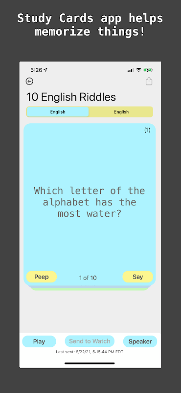 🏃Salah satu dari sedikit aplikasi kartu flash yang berfungsi di perangkat Wear OS, memungkinkan Anda belajar sambil berlari!