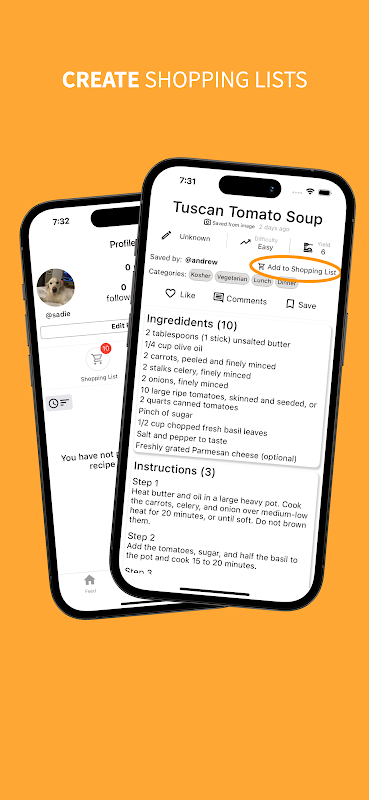 Simpan dan bagikan semua resep favorit Anda! Simpan resep dengan mudah dari sumber mana pun dan mulailah membuat buku masak digital Anda!