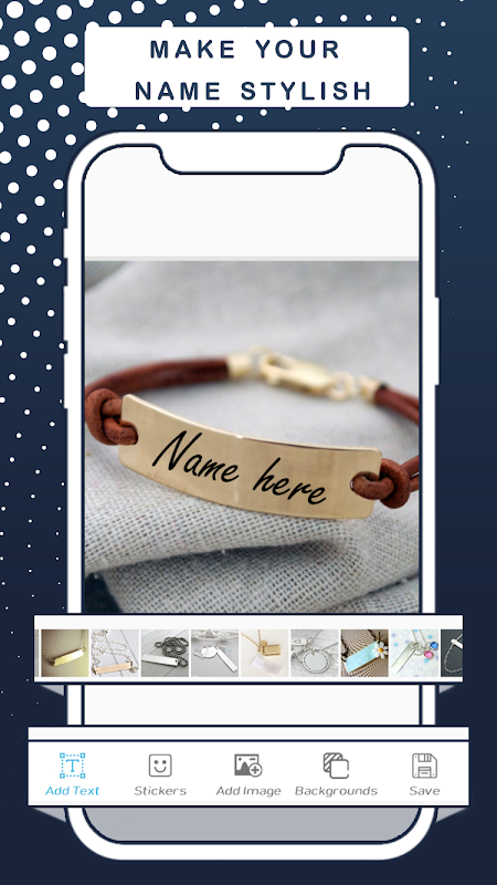 if you want to edit your friend name on bracelet in stylish and unique way and wanna gift to your friend to show expression of love to him/her then this stylish name maker app is the special and most advance relible easy way to edit such stylish name on bracelet.