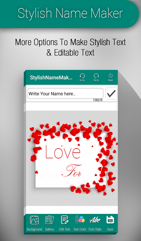 → App contains different types of backgrounds to write names on them like write name on lovely backgrounds , write name on bracelets , write name on cake , write name on heart.