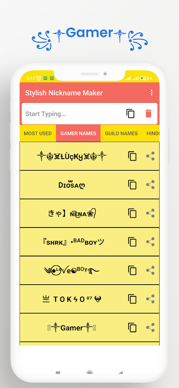 With Stylish Nickname Maker App you can make unique and special stylish Nicknames for your game's profile, cool clan names, and great guild names.