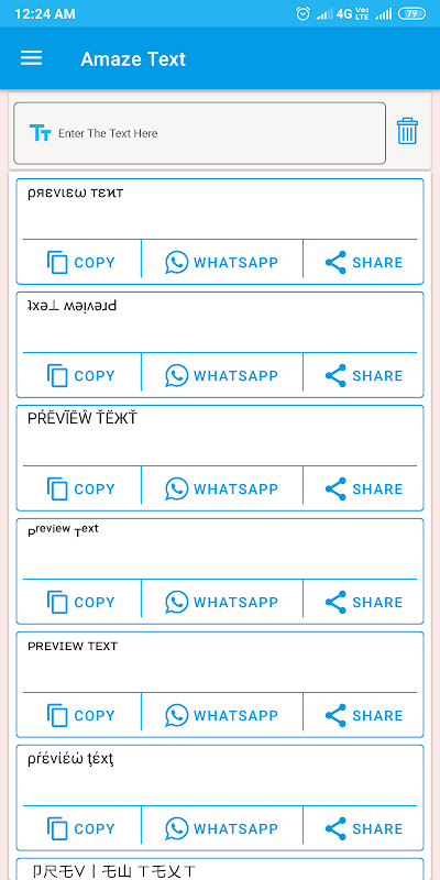 1. Salin teks terbalik dan gaya langsung dari tombol salin dalam aplikasi.