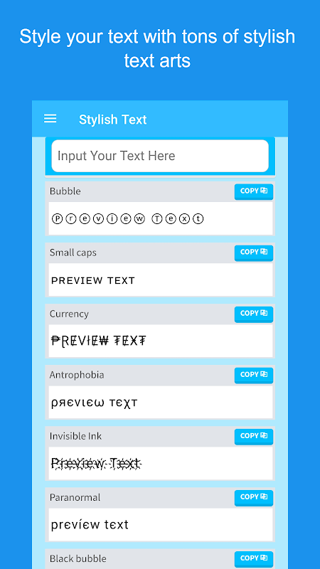 Aplikasi Teks Bergaya menambahkan sentuhan gaya ke pesan Anda saat mengobrol dengan teman-teman Anda dengan menggunakan teks dekoratif yang telah dibuat sebelumnya.