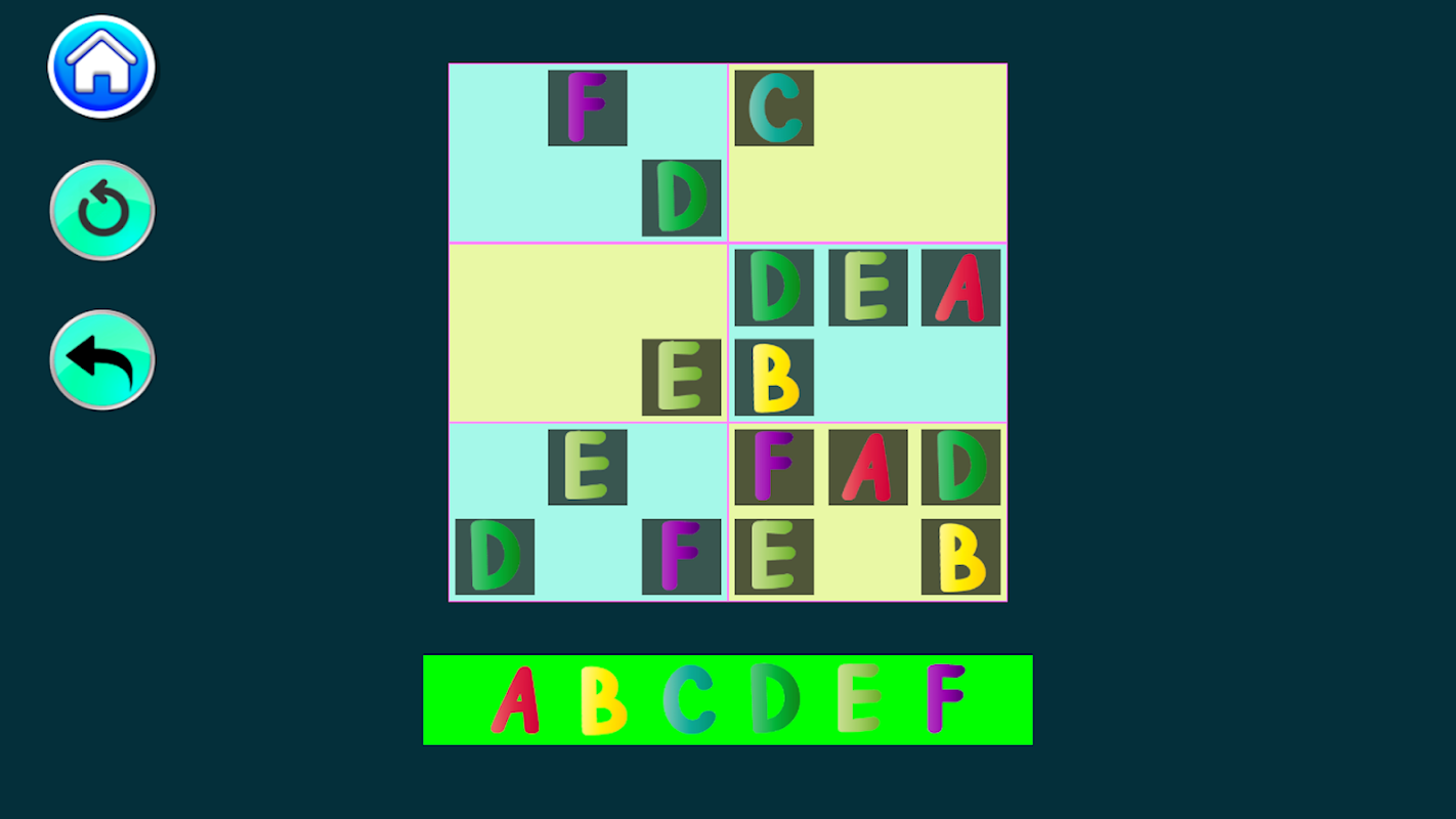 3.Alphabets: Ganti semuanya dengan menggunakan huruf, bukan angka. Atur alfabet di tempat yang tepat, uji logika dan pengetahuanmu tentang huruf dengan cara yang menyenangkan dan kreatif.