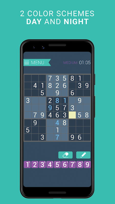 🌓 Tema Siang dan Malam: Sesuaikan pengalaman Sudoku Anda dengan dua skema warna yang menarik secara visual. Beralih antara mode Siang dan Malam untuk pengalaman visual yang dipersonalisasi dan menyenangkan.