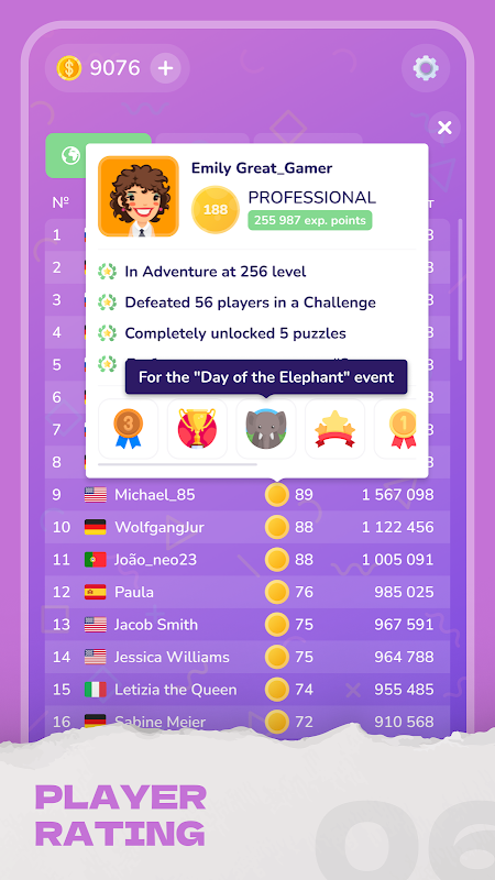 • Peringkat pemain Sudoku dari seluruh dunia.