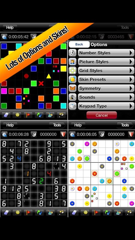 In ▻Sudoku, you win a game when you solve a puzzle with 3 errors or less (we used this threshold to give a bit of slack for mis-tapping :) Also, you have a number of hints to help you play (more at the easy, less at the hard level). To fit any taste, you can choose between a lush tile look or a more classic board look :)