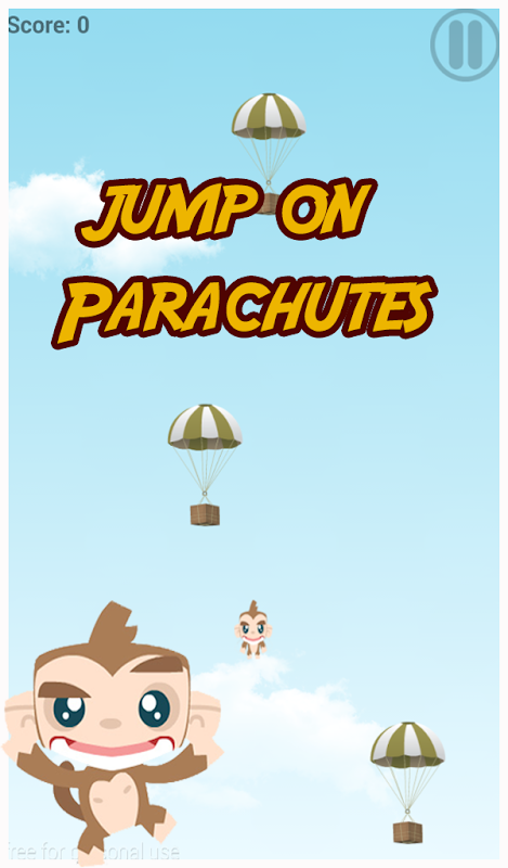 You must prevent monkey from falling down and help him by jumping on parachutes.