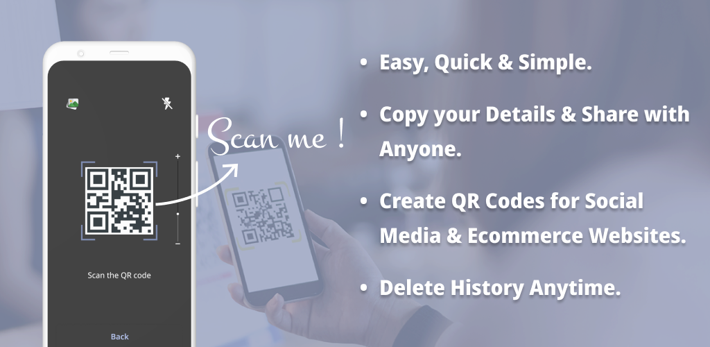 🔸 Supported QR code types: Text, Contact, Email, Phone, Product, SMS, URL, Wifi, Geo, Calendar Event…
