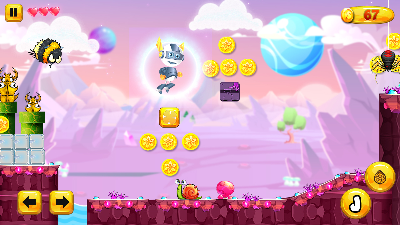 Celebrate childhood with classic jungle adventure of modern robot. Fight dangerous bosses in the mysterious jungle. A super fun game for young and old alike.