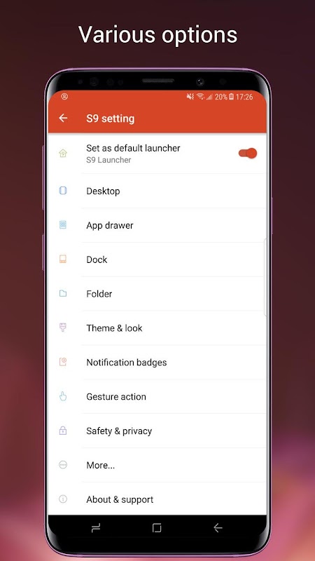 * Mendukung tata letak desktop kunci untuk menghindari desktop peluncur s9 dikacaukan oleh anak-anak