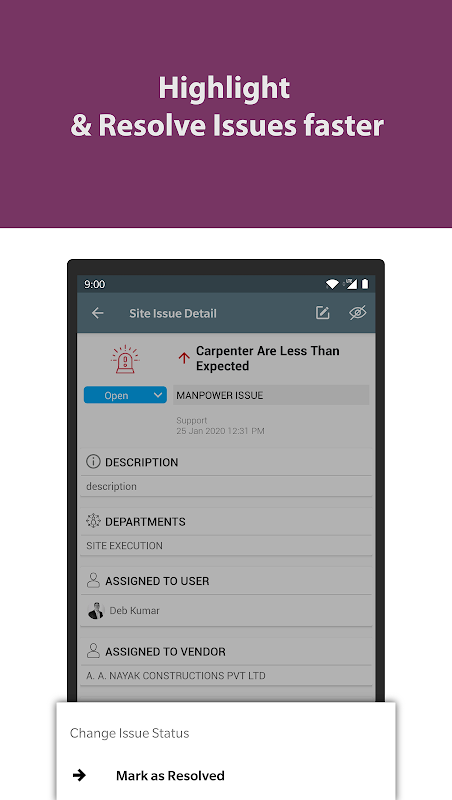 Dengan Aplikasi Seluler SuperWise, Pengawas Situs konstruksi dapat melaporkan: